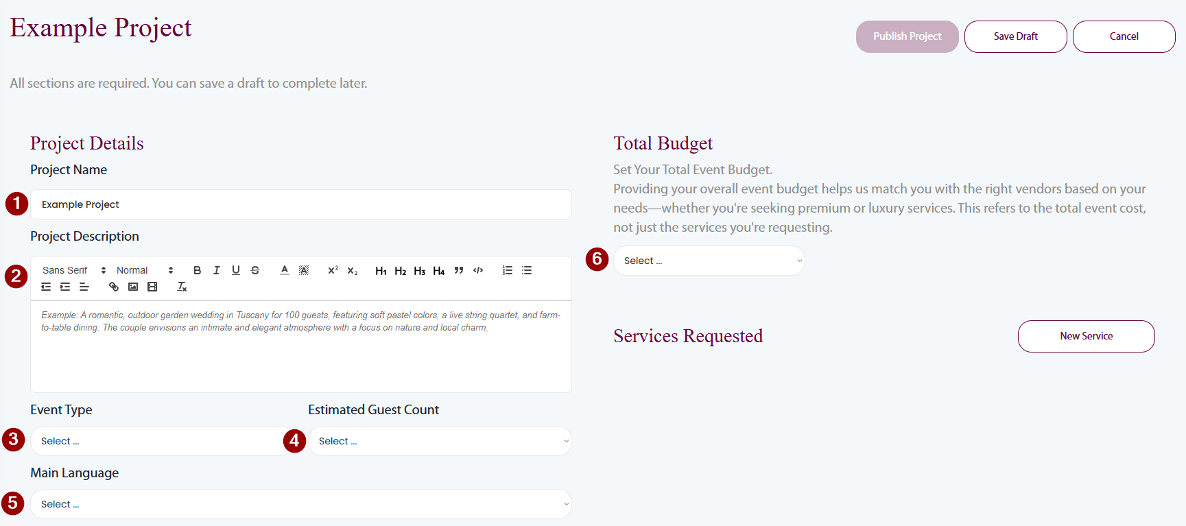 Creating a project for your weddings or events is the first step to get the perfect vendor matches!