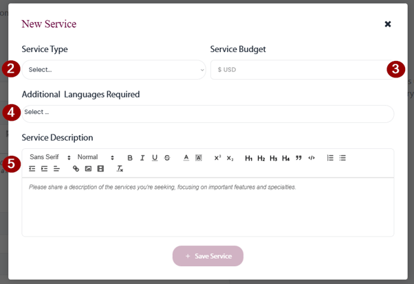 - If the vendor needs to be able to communicate in an additional language (e.g. the caterer needs to be able to communicate with the guests at the event), specify it here.