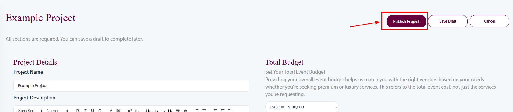 ** You can add formatting as well as pictures and links to enable the vendor to see your vision before the engage with you.