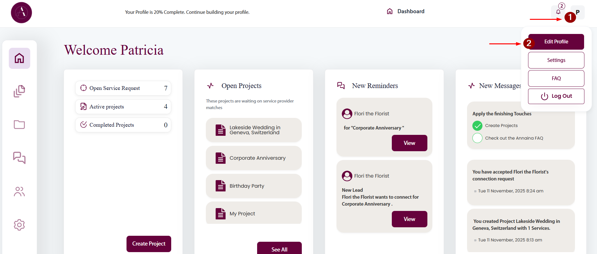 Complete and edit your Annaina profile and Services