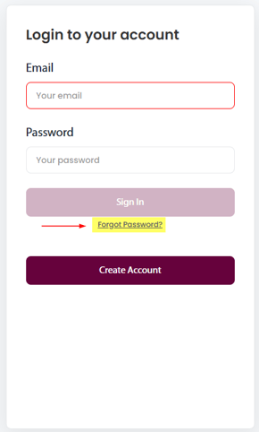 2. Enter your the email address linked to your Annaina account and click "Send Email" to receive an email with a personalized password reset link.