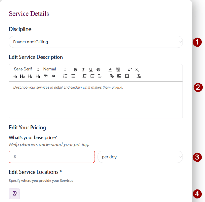 3. Provide a base Price for your Services