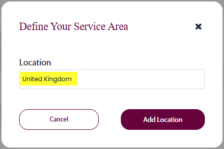 Repeat for all Locations where you provide your services.